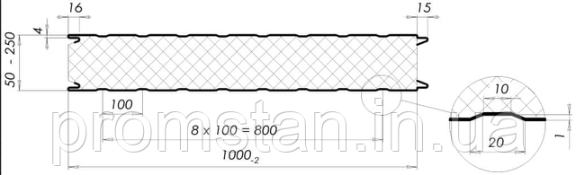 - Товщина панелі: 50,60,80,100,120,150,200,250.